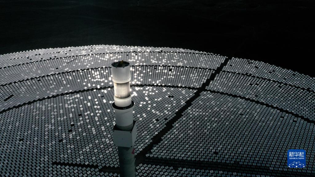这是位于青海省海南藏族自治州共和县光伏产业园内一处塔式光热发电项目(3月3日摄,无人机照片)。