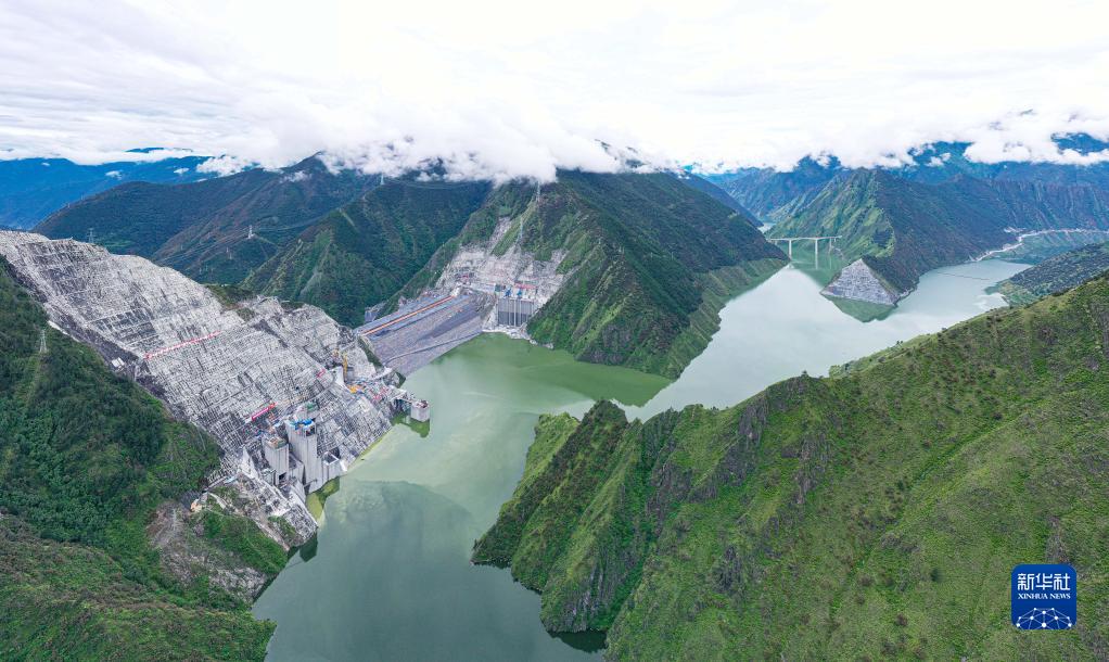 这是雅砻江两河口水电站一角,两河口水电站是国家和四川省重点工程、西部大开发优化能源供给侧结构性调整的战略工程(7月15日摄,无人机照片)。